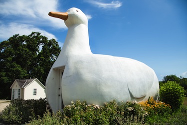 Broadway set designers, the Collins Brothers, designed the Big Duck, while locals George Reeve, John Smith and Merlin Yeager crafted it in 1931. Plus, it is now listed on the National Register of Historic Places.