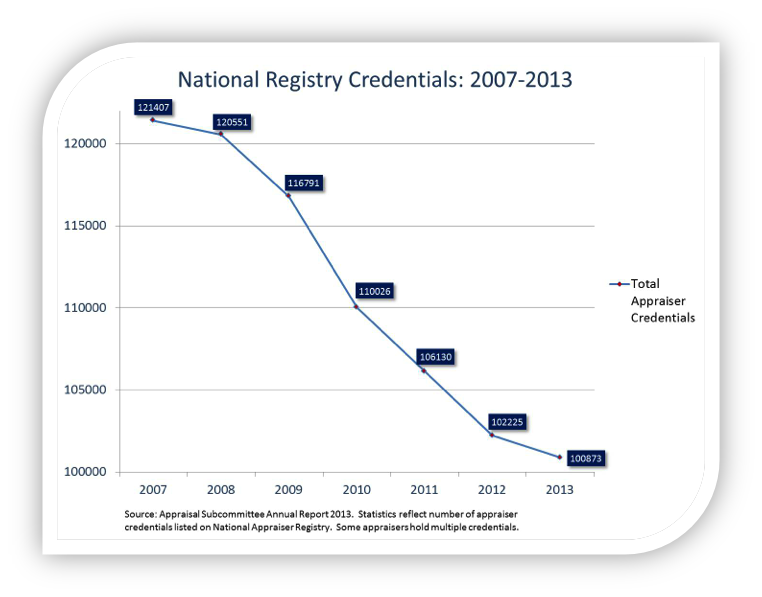 The residential real estate industry has undergone significant change in the past nine years. Many of these changes were implemented in reaction to a wide variety of conspiring factors that led to the decline of the housing market. All sectors of the industry experienced regulatory impact and legislative pressure, and the appraisal profession was no exception. Some of these changes have produced unintended consequences that have resulted in a decline in the number of active residential appraisers. Concurrently, due to economic and logistical challenges, these changes have prevented development and implementation of a viable process through which new appraisers could enter the profession.
