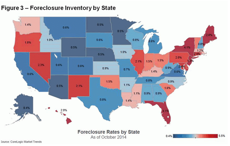 On a month-over-month basis, the foreclosure inventory was down 2.1% from September 2014. The current foreclosure rate of 1.6% is the lowest inventory level since May 2008.