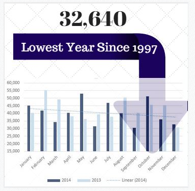 December job cuts were down 9.2% from 35,940 planned layoffs in November. However, this was still 7% higher than the same month a year ago, when employers announced 30,623 job cuts, which happened to be the lowest monthly tally in 2013.