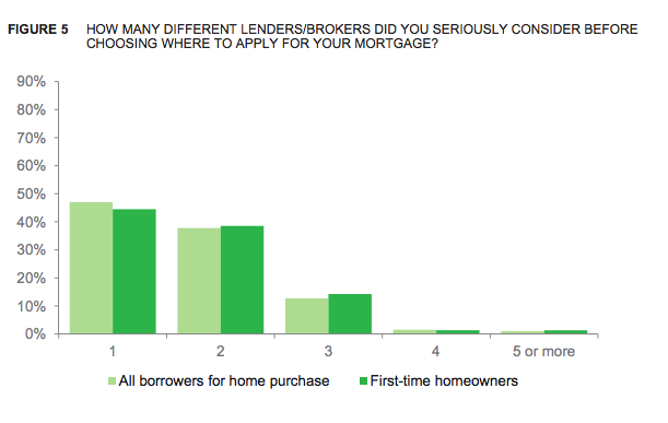 Based on new data in the National Survey of Mortgage Borrowers, a voluntary survey jointly conducted by the CFPB and the Federal Housing Finance Agency, almost half of consumers who take out a mortgage fail to shop prior to filling out an application for a mortgage. Three out of four consumers only apply with one lender or broker, and most consumers only get their information from lenders or brokers, who have a stake in the outcome.