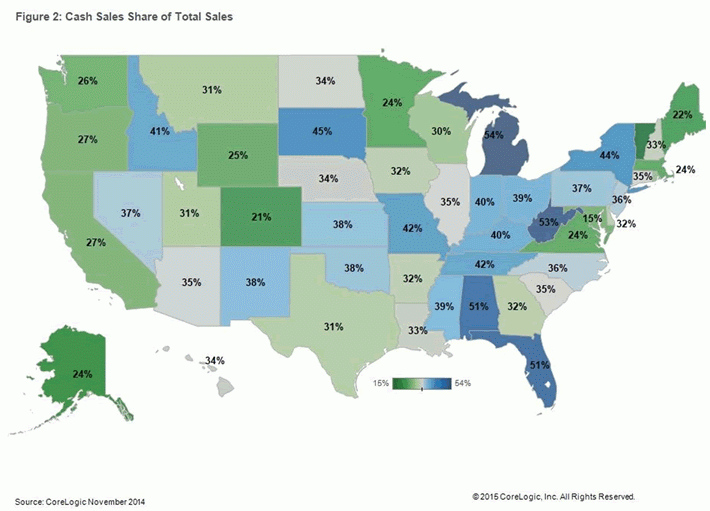 Click the image below to see the cash sales percentage by state in November 2014. Image courtesy of CoreLogic.