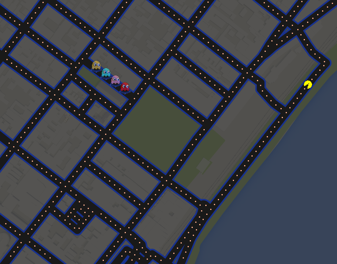 And, yes the online search engine can superimpose the classic video game Pac-Man on to various cities across the world.