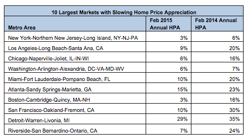 Broken up across the nation’s largest metros, home price appreciation slowed in 65% of metros.
