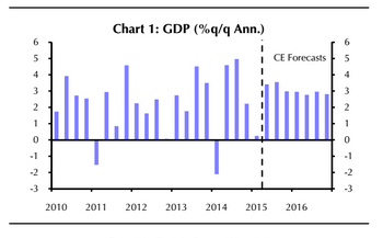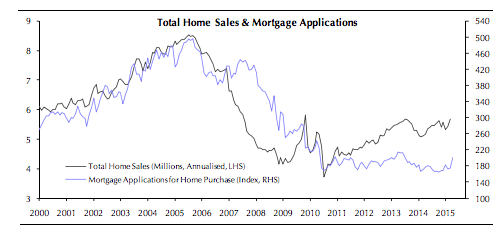 "The slowdown in growth in the first quarter should prove temporary. We expect GDP growth of 2.8% for 2015 as a whole,” they said. “With the Federal Reserve now unlikely to raise interest rates before September, mortgage rates should stay lower for longer.”