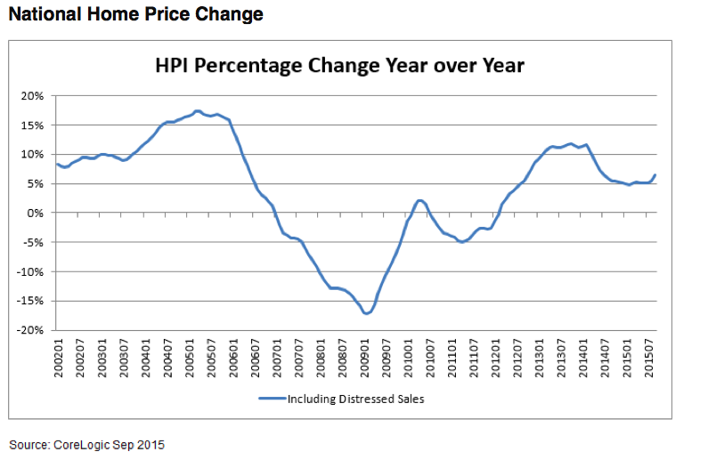 Home prices nationwide, including distressed sales, increased by 6.4% in September 2015 compared with a year ago, according to CoreLogic’s (CLGX) latest home price index. This is up 0.6% compared to August 2015.