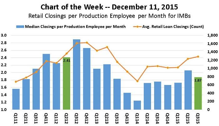 The median closings per production employee was 1.87 loans per month in the third quarter of 2015, which translates into about 22 loans per year.