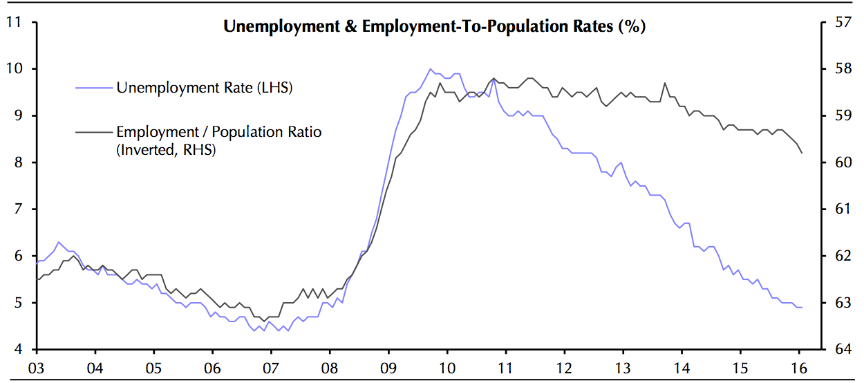 See chart below for the Unemployment & Employment-To-Population Rates.