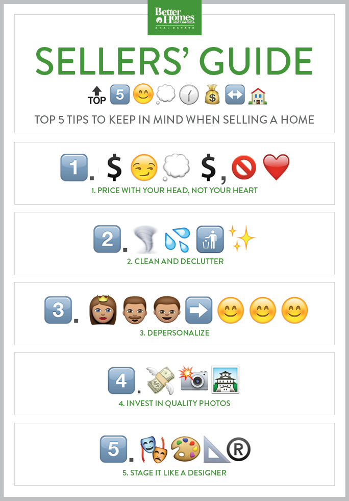 Consumers are inundated with tips on buying and selling a home this spring, but a tip sheet from Better Homes and Gardens Real Estate and long-form emoji master Zoe Mendelson breaks up the common message to give new quirky and quick help to those needing it.
