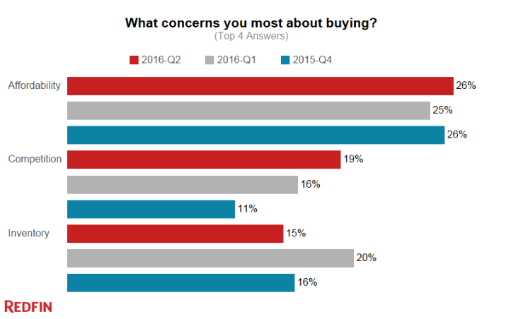 Affordability, while the number one homebuyer concern, might soon be unseated by worrying about buyer competition, according to a new housing report from Redfin.