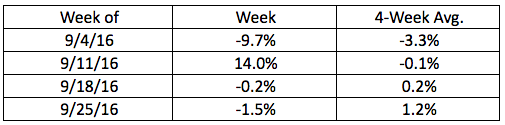 Appraisal volume in the next week posted a slight .2% decline. Then there is the most recent week of Sept. 25, which recorded a 1.5% drop.