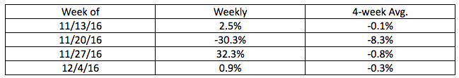 As a result, the four-week average moved into positive territory for the first time since early October.