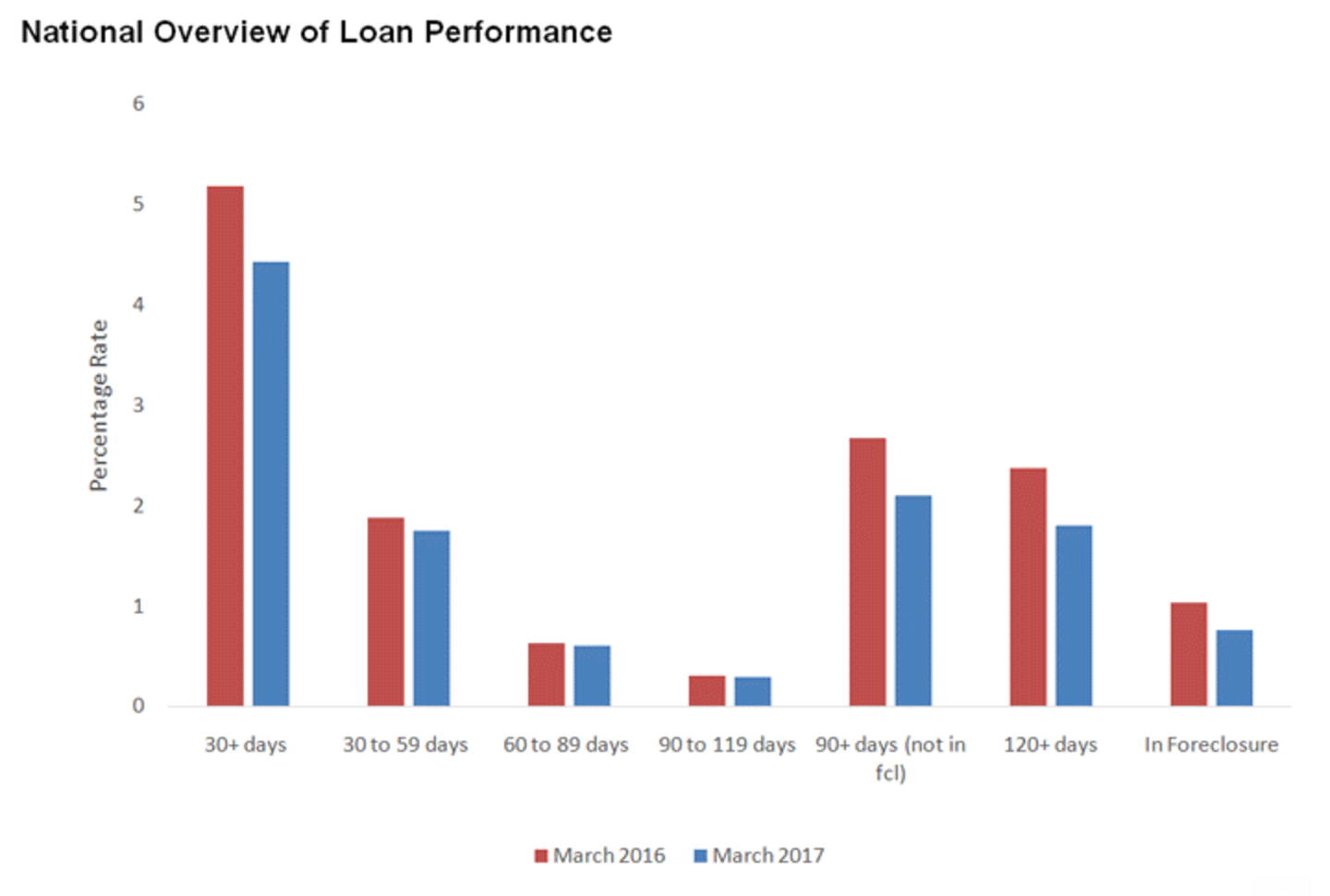 In order to measure the health of the mortgage market, CoreLogic looked at early-stage delinquency rates. Early-stage delinquencies, defined as 30 to 59 days past due, dropped to 1.7% in March, down from 1.9% last year.