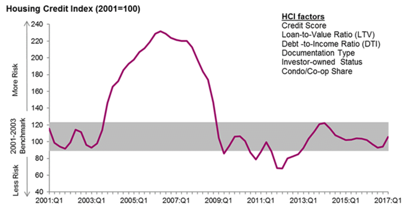 During the first quarter, the HCI increased to 105.6, an increase of 3.6 points from the first quarter of 2016. However, even after the increase, the level of credit risk in the first quarter was nearly the same as the average 105.9 for the period of 2001 to 2003, a time which is considered to be a normal baseline for credit risk.