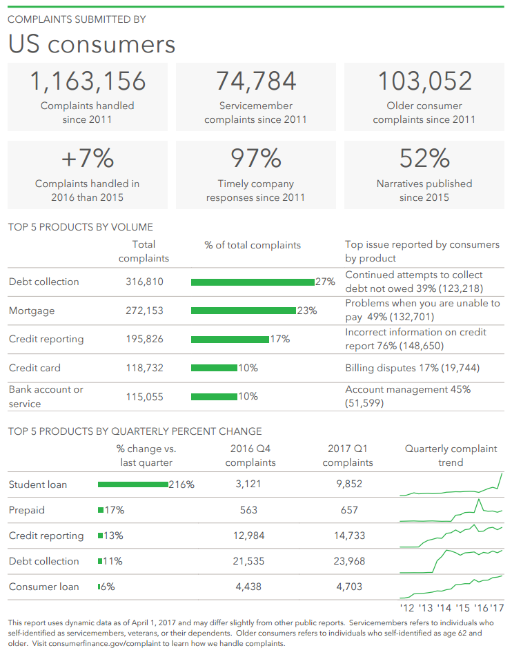 The CFPB handles more than 20,000 complaints every month, and overall, it has received more than 1,163,156 complaints since 2011.