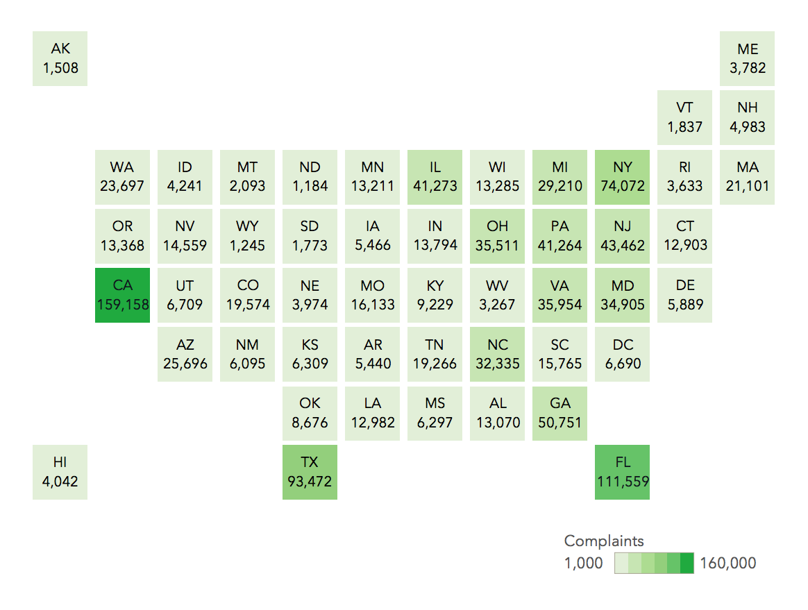 But first, the chart below gives an overview of the number of complaints each state receives.