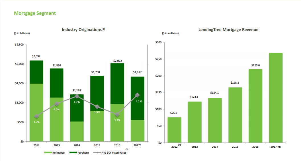 In 2012, for example, revenue from the mortgage segment was $76.2 million for the year. In 2017, the company appears to be on track for mortgage revenue of approximately $275 million, as shown the graphic below.