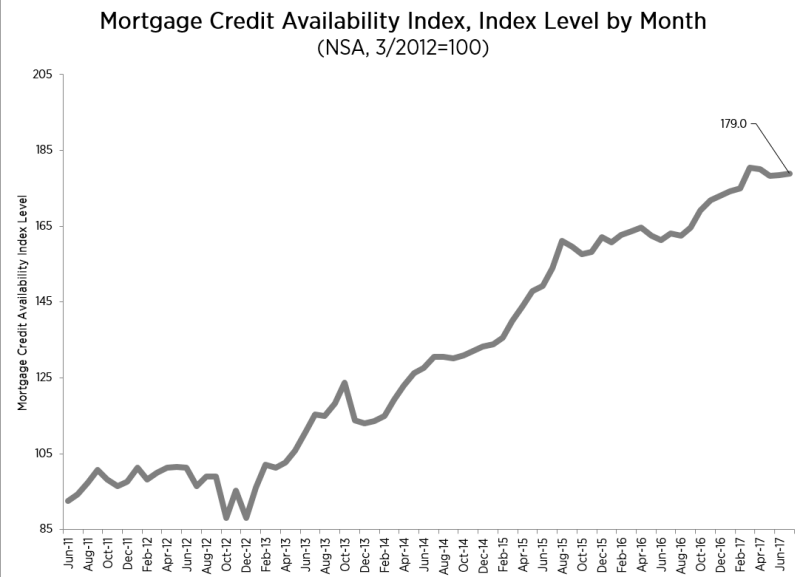 The chart below displays the mortgage credit availability since June 2011, showing a gradual increase over the years.