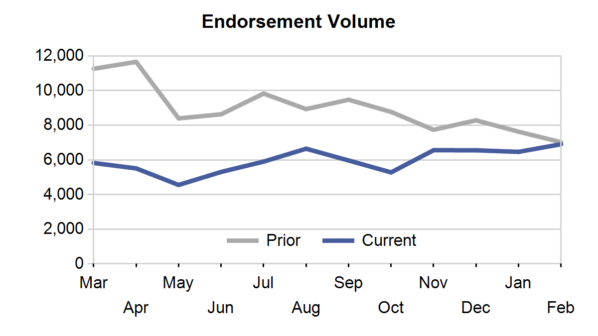 According to the latest Retail Leaders report from Reverse Market Insight (RMI), endorsement volume jumped in February, while application volume dropped in January. At the same, time the number of active lenders bounced by almost 10 percent.
