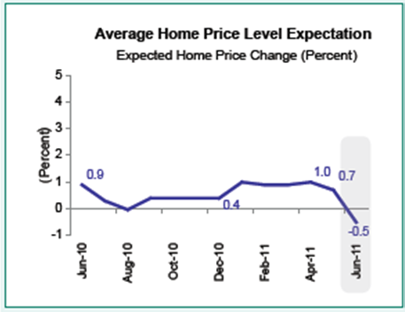 The survey of 1,000 adults found an expectation that home values will decline by 0.5% in the coming year. This marks the first negative reading in the survey in the past year.