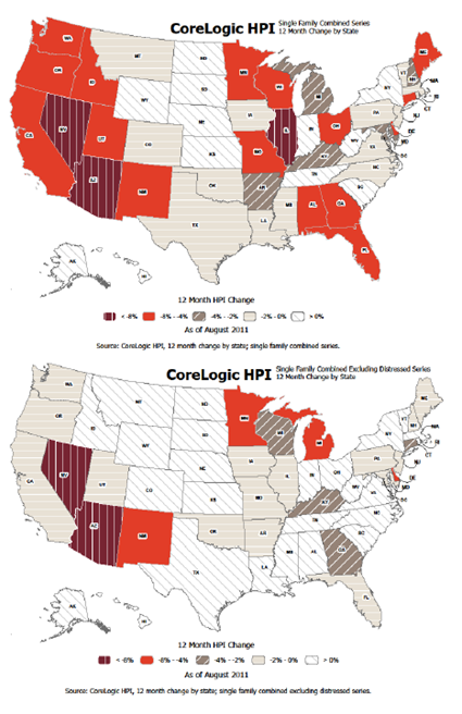 “Although the calendar says August, the end of the summer traditionally marks the beginning of 'fall' for the housing market as it begins to prepare for 'winter.' So the slight month-over-month decline was predictable, particularly given the renewed concerns over a double-dip recession, high negative equity, and the persistent levels of shadow inventory. The continued bright spot is the non-distressed segment of the market, which is only marginally lower than a year ago and continues to exhibit relative strength,” said Mark Fleming, chief economist for CoreLogic.