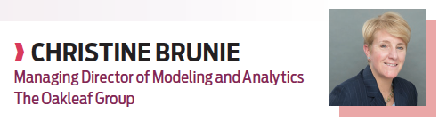 Christine Brunie, managing director of modeling and analytics, is the woman behind The Oakleaf Group’s position as a thought leader in the industry, bringing her 20-plus years of experience in finance to the world through a number of white papers and blogs from her and her team.