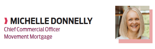 As the chief commercial officer for Movement Mortgage, Michelle Donnelly has been the driving force in the company’s corporate strategy development and execution over the past year. She led the process with other leaders that resulted in Movement selecting three “strategic big bets” for its future. The bets are a commitment to investing in people development, world-class technology and a commitment to leveraging people and technology to result in marketshare growth.