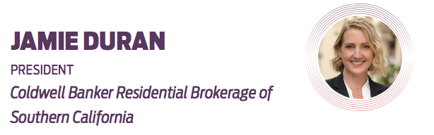 A real estate professional in Southern California for over 25 years, Jamie Duran is president of the Southern California companies of Coldwell Banker Residential Brokerage, which ranks as the top residential real estate company in the local markets.
