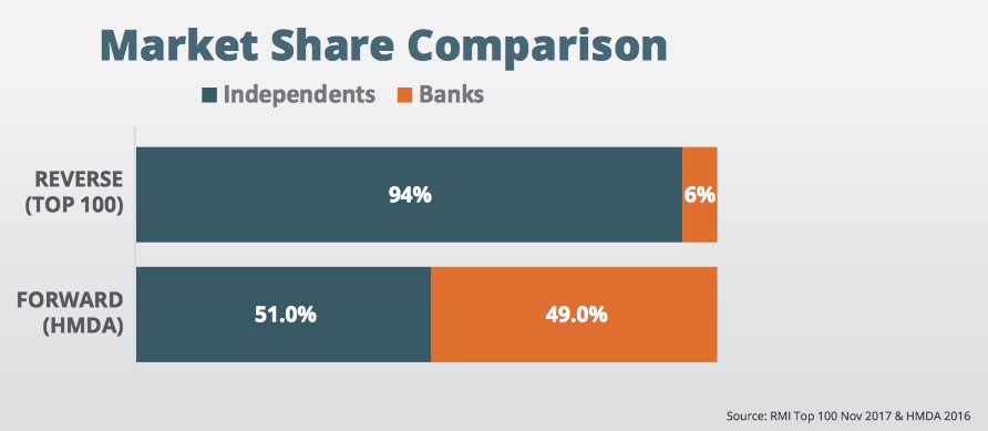 STRATMOR’s key pitch to forward lenders hinges on favorable demographic shifts on the horizon and the general underutilization of HECMs among the general population. In addition, the firm postulates, big banks’ departure from the business has left a void for independent mortgage firms — while major lenders such as Wells Fargo and Bank of America are unlikely to return.
