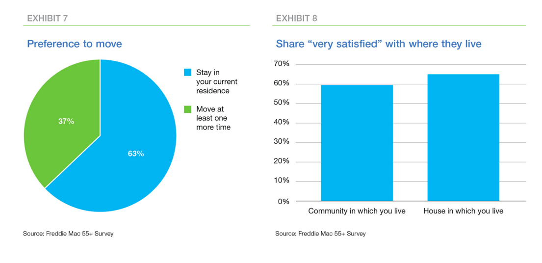 One of the most common opinions expressed by adults aged 55 and older was that they want to age in place. When thinking about their preference to relocate, 63% said they want to remain stay in their current residence, while 37% said they would like to move at least one more time.