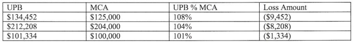 NRMLA servicer members developed several potential HECM servicer loss scenarios that would occur if the proposal were adopted by HUD as currently drafted based on loans in their servicing files. The servicers described HECM loans not eligible for assignment to HUD when the unpaid principal balance (UPB) on such loans originally reached 98% of MCA because the loans were in default at that time.