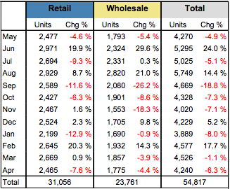 As for unit growth over the last 12 months, RMF continued to lead with way on the retail side, with 955 units added during that timeframe. This now brings the company’s total retail unit volume to 1,521 over the last 12 months trailing April 2016. With 2,012 wholesale units, RMF combines for 3,533 units added in the last 12 months.